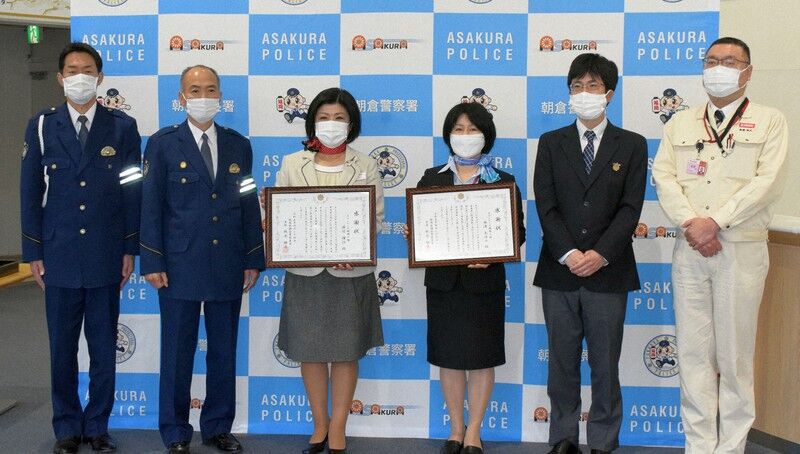 福岡県警朝倉署は24日、飲酒運転を未然に防止したとしてキリンビール福岡工場(朝倉市、高橋伸夫工場長)の工場見学スタッフ2人に感謝状を贈った。