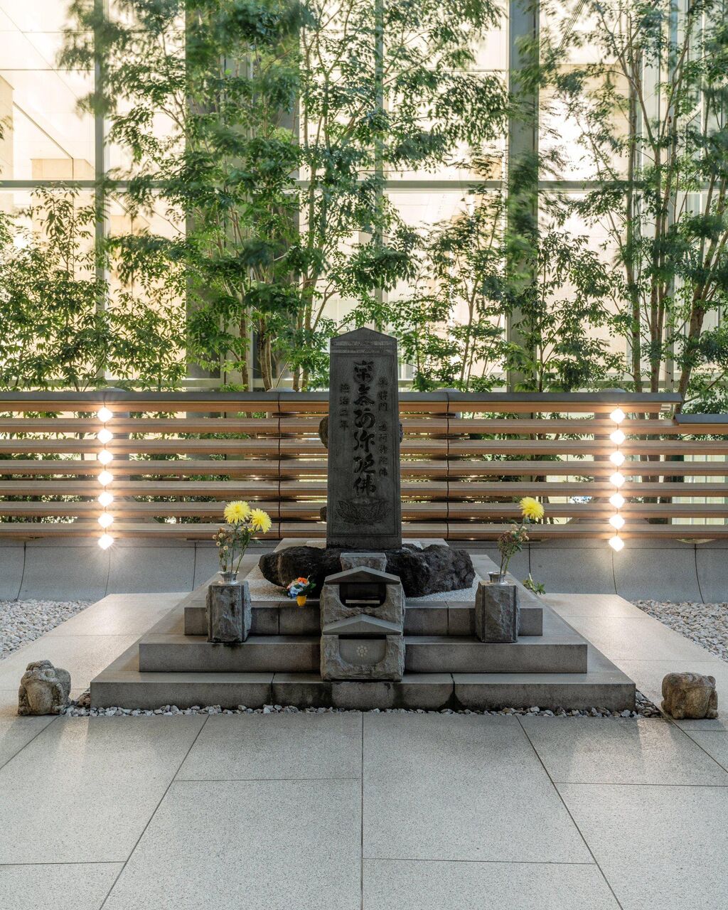 リニューアル後の「将門の首塚」は、お墓周辺も白で統一された石畳で整備され、ささやかな植物が周辺に配置されるなど、明るく開放的な印象に。