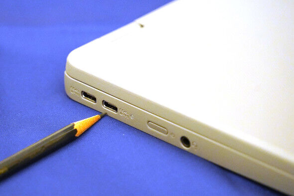 これは、鉛筆の芯が端子に触れて発煙/発火しないように高さが配慮されたUSB Type-Cポートだ。Chromebook Y4では、これまで現場で得られたフィードバックから、大人が想定しないような使い方に耐えられる、スペック表に現れない細かなアップデートが施されている。
