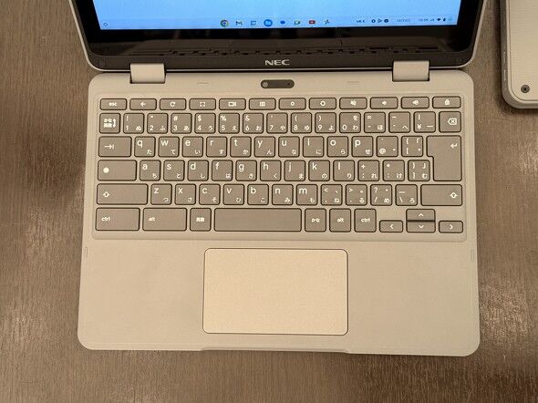 NEC Chromebook Y4では、ヒンジ部分の内蔵ケーブルを改良することで開閉時のダメージ蓄積を軽減する新設計を採用した他、電源供給も担うUSB Type-Cポート×2や3.5mmイヤフォンジャックを全て本体左側に配置した。これは机上でPCが左側、鉛筆やプリントなどが右側に置かれて使われることを想定したもので、例えば鉛筆の芯部分が端子に触れて発煙/発火しないように配慮したものだ。