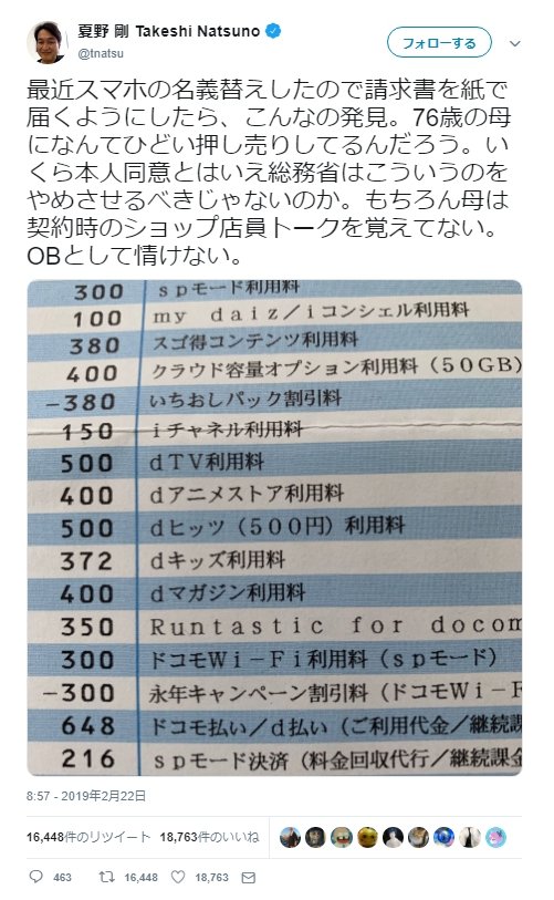 十年以上使ってやったのに一言も礼がないドコモ
